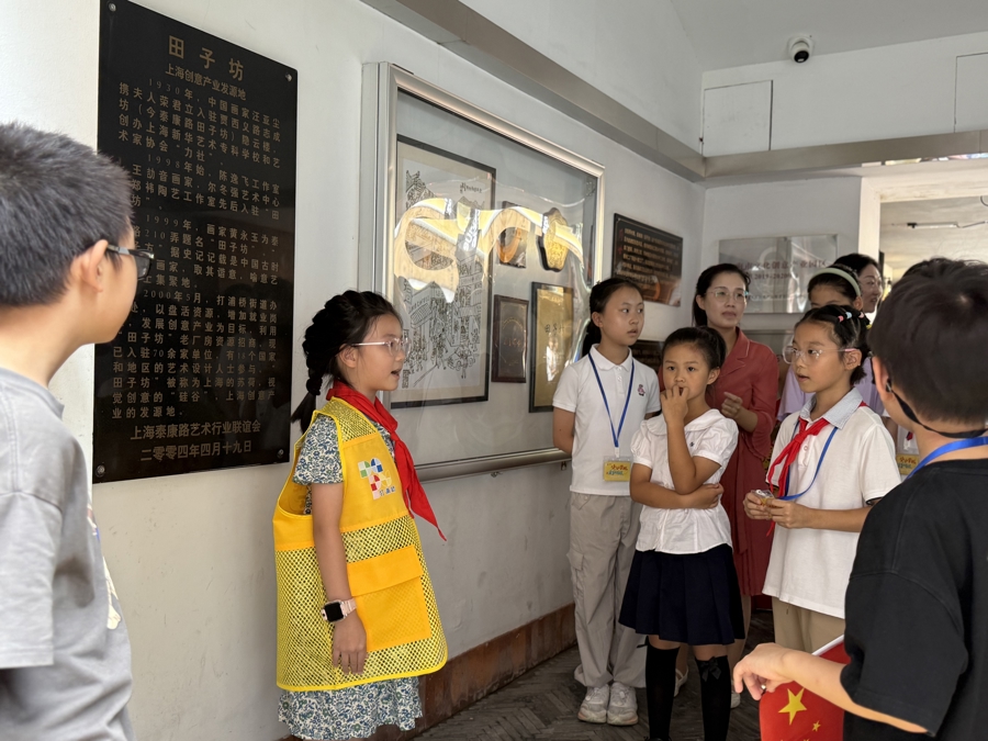 活动前期,这些小导游们经历了严格的“修炼”,通过实地走访、查阅史料,深入挖掘田子坊的历史文脉。从“田子坊”名称与古代画家田子方的艺术渊源到陈逸飞在此开创的艺术先河,从石库门建筑“螺蛳壳里做道场”的营造智慧到老厂房变身创意Loft的历程,孩子们将挖掘到的点滴故事,融汇成了独具童趣特色的讲解词。