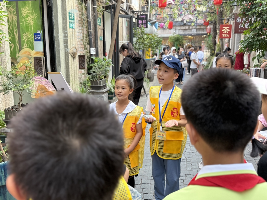 用童声,讲好黄浦故事和上海故事。10月1日下午,在上海地标性文创街区田子坊的纵横弄堂里,来自打浦桥街道瑞泰综合网格“小小掌柜·童创街区”项目的“小小导游志愿服务队”完成了“持证上岗”首秀,用童声向世界递出了田子坊、黄浦乃至中国的文化名片。